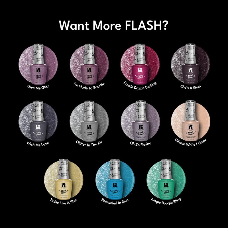- The 3-step color lock RCM system starts with a base coat that prepares the nails for gel polish, promoting adhesion and durability. Step two involves applying vibrant Silver Glitter Gel Polish for bold, long-lasting color. Lastly, seal in the color with a top coat for a high gloss finish that ensures your manicure's longevity and shine.