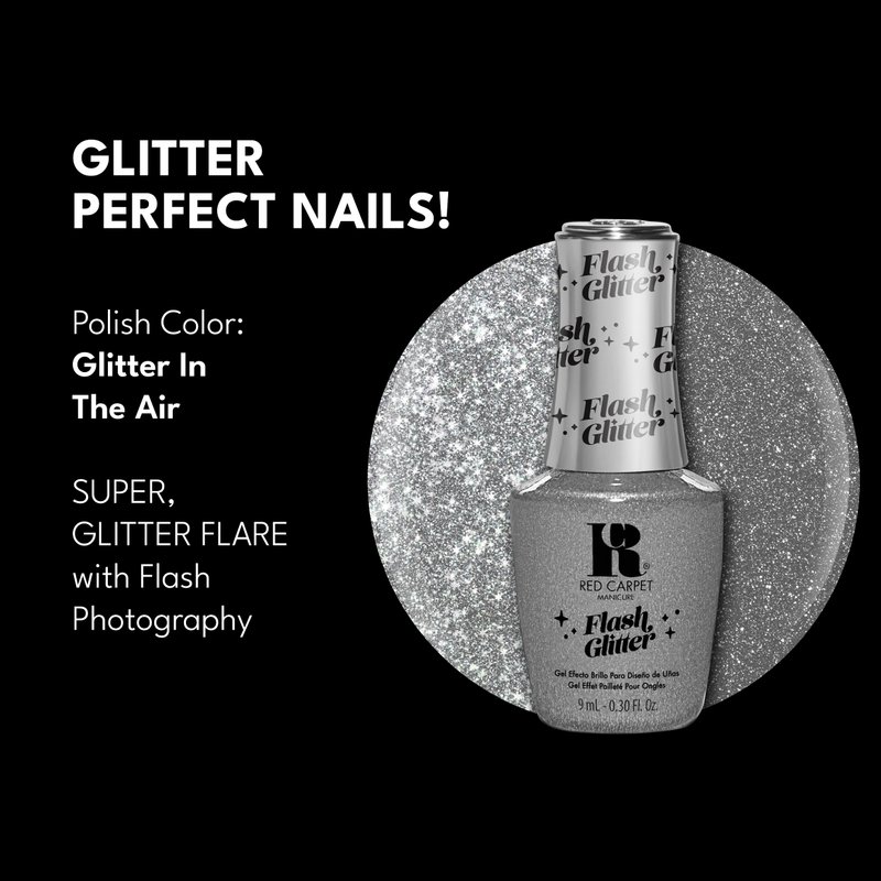 Red Carpet Manicure Fortify & Protect Silver Glitter Gel Polish for Strong, Healthy Nails - Infused with Vitamin A & Biotin - (Glitter In The Air) Led Nail Gel Color, 0.3 Fl Oz