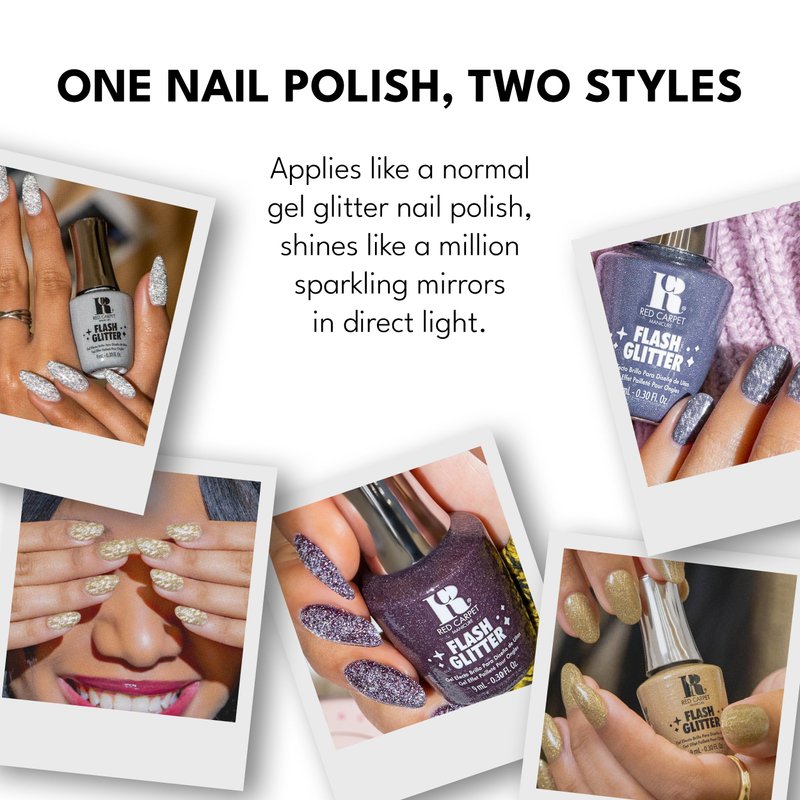 Get the ultimate protection for your nails with Red Carpet Manicure Fortify & Protect Silver Glitter LED Glitter In The Air Nail Gel Color. This premium soak off gel polish is infused with Vitamin A & Biotin for stronger, healthier nails that grow longer and have a gorgeous high shine. With its patented formula, it applies like polish and provides chip-free wear for up to 21 days. The 3-step color lock RCM system begins with a base coat application that prepares the nails for the gel polish, enhancing durability and promoting adhesion. The second step involves the application of the vibrant Silver Glitter Gel Polish, providing bold, long-lasting color. The final step is the application of a top coat that seals in the color and provides a high gloss finish, ensuring your manicure's longevity and shine. This Silver Glitter gel polish is perfect for fashionistas who want their nails to stand out. It's easy to remove without damaging your nails, and the high shine finish will make your nails look like they were done by a professional.