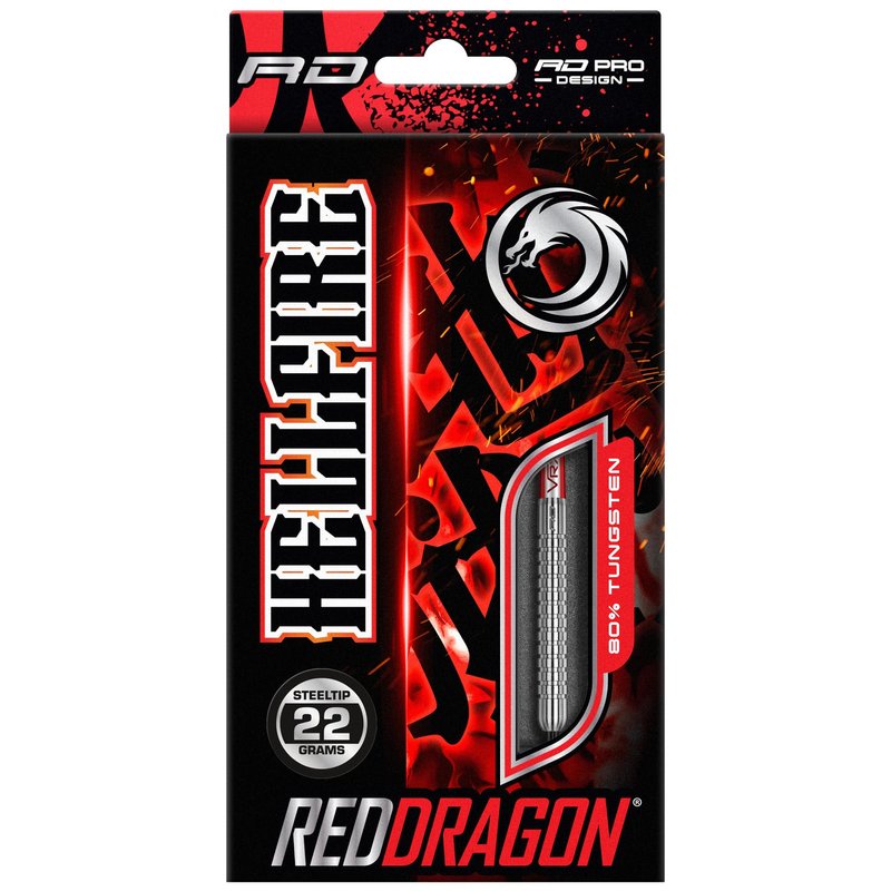 Set of 3 x 22g - 80% premium quality Red Dragon tungsten darts; Red Dragon stems; Red Dragon flights; Timeless, classic parallel and torpedo barrel designs; Hell Fire are available in 22g, 24g and 26g weights