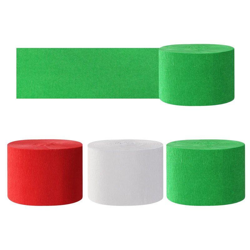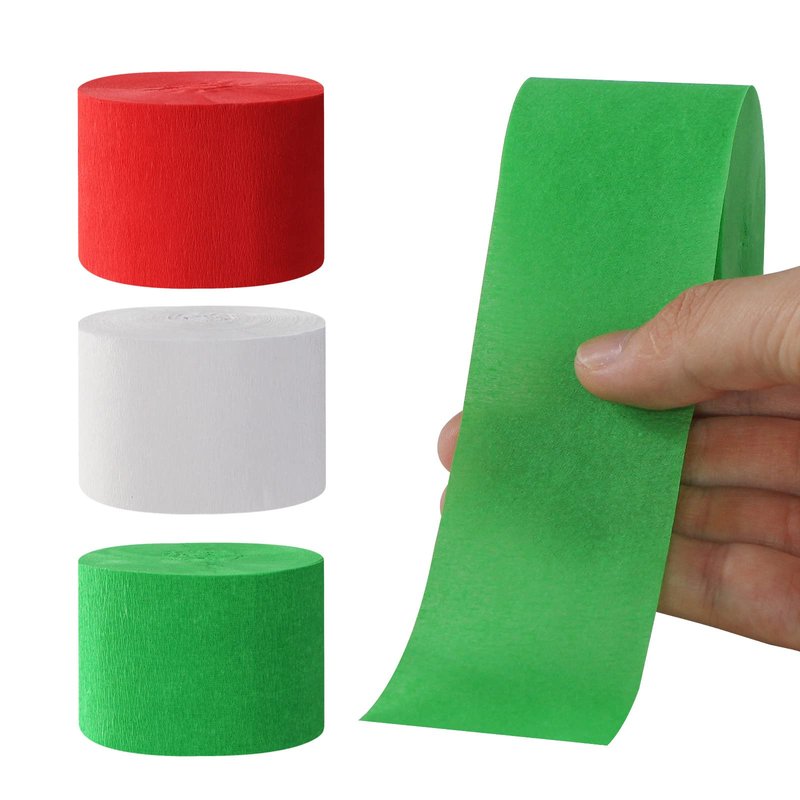 - 【Bright color】 Our crepe paper is available in 3 colors, 3 rolls per color:red green white.There is plenty of each color to really get creative and have some fun.