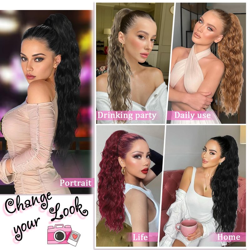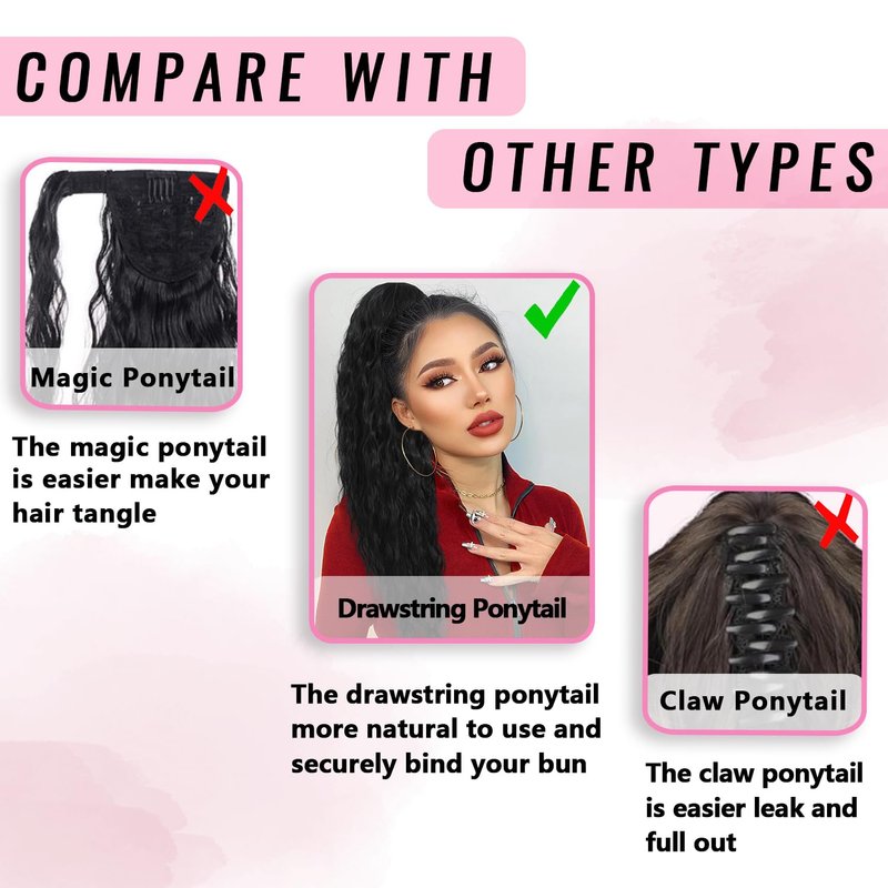 - High Quality Material: Long curly wavy drawstring ponytail is made of high temperature synthetic fiber, the ponytail specially designed with multi-layer hair, which makes the ponytail more natural. Make you more confident and get lots of compliments.
