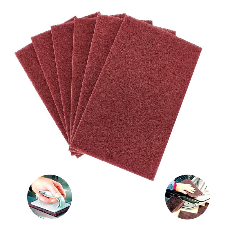 Red Scuff Pads - 6Pcs Scouring Pad 7447 - Very Fine Grade Hand Pads General Purpose Sanding Hand Pads 200 x 125mm/8" x 5"