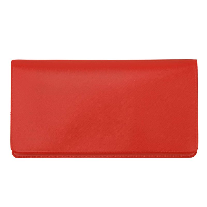 Stay on top of your finances with this red vinyl checkbook cover. This convenient and smooth vinyl checkbook cover is durable, classic and elegant. It is the perfect cost effective method for storing your top tear personal checks and transaction register. One of the basic advantages of the red vinyl checkbook cover is that it is thicker than most checkbook covers. This cover is designed to fit standard top tear personal checks. Protect your checks from damage in daily handling and store your transaction register at the same time with this everyday low-priced durable cover. The red vinyl checkbook cover is a utilitarian product that is resistant to cracking and twisting. It easily folds closed to fit in your purse or jacket and is the perfect way to stay both slim and stylish.