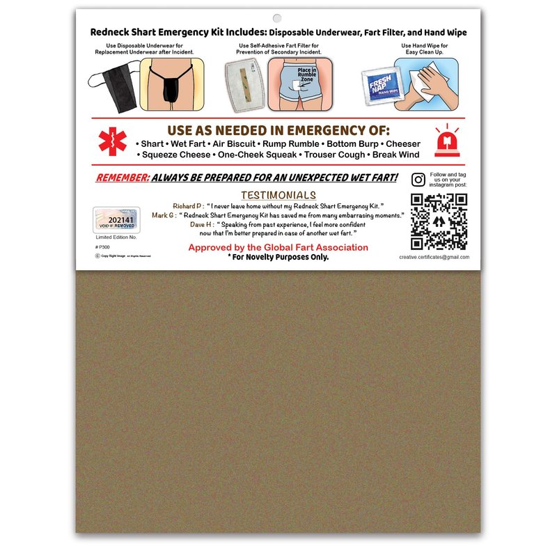 Reneck SHART Wet Fart Emergency Kit - Funny Joke Prank Gag GIFT, Birthday, Party Favors, Christmas, Stocking Stuffer, White Elephant, Secret Santa and More! Hillbilly