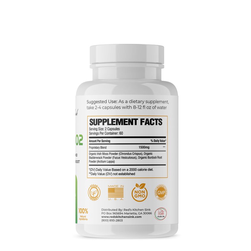 Red's Kitchen Sink Cell Fuel 102 Sea Moss Capsules | Made with Irish Sea Moss Bladderwrack and Burdock Root | Organic Sea Moss | 120 Seamoss Pills per Jar - 60 Servings / 2 Month Supply