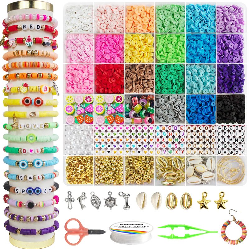 Specification: 6200pcs (5500flat clay beads + 700 pendant) material: polymer clay color: 21 colors. Features: 5500 bead kits and accessories, perfect diy kit for crafters, can be used to make bracelets, necklaces, earrings, jewelry and other crafts. We strictly control the production of bracelet kits with high quality. Make sure that each bracelet beads is the correct size and color when you use it, and that it is not easily damaged. Clay bracelet making kit is a perfect diy kit for you, it is also a perfect and anticipated gift for others because of the individual gift wrapping.It's an exciting gift for kids to make their own crafts and enjoy family time with them.It's the perfect gift choice for birthdays, Thanksgiving, Mother's Day, Christmas and more.