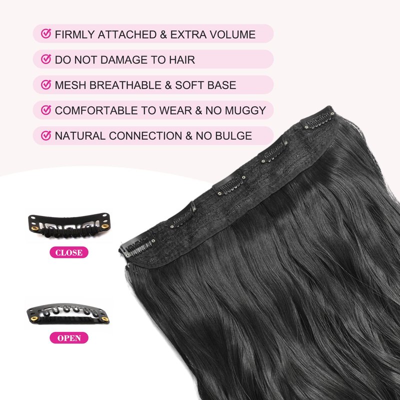 REECHO 24" 1-Pack 3/4 Full Head Curly Wave Clips in on Synthetic Hair Extensions HE008 Hairpieces for Women 5 Clips per Piece-Natural Black
