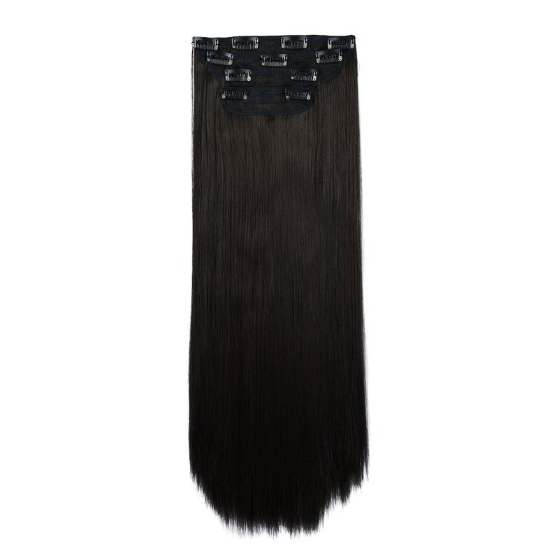 REECHO 24" Straight Long 4 PCS Set Thick Clip in on Hair Extensions Black Brown