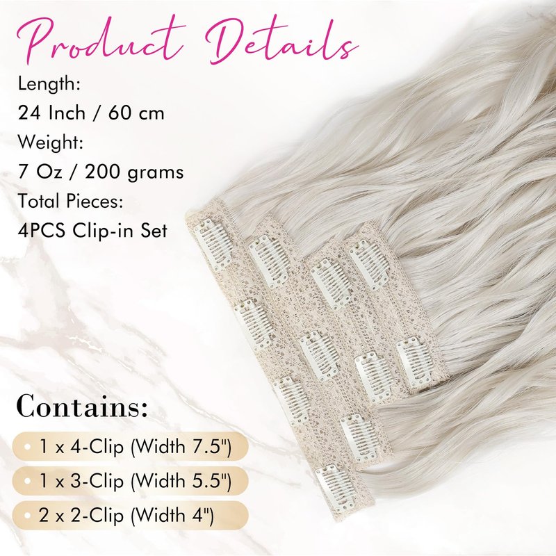 - ✨ [What Come In] Each pack comes with 4 wefts for customizable placement on thin or thick hair: 1 x 7.5" width with 4 clips, 1 x 5.5" width with 3 clips, 2 x 4" width with 2 clips; length 24”; total weight 200g
