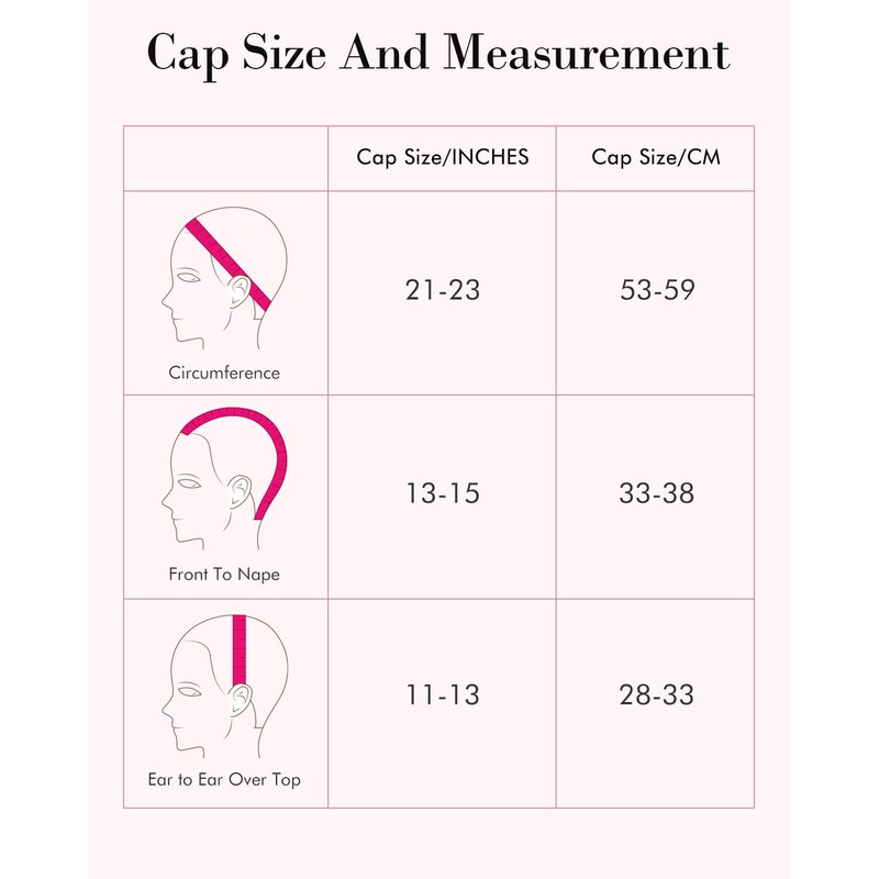🌹Cap Size: 21inch and can stretch up to 23”, fit most heads