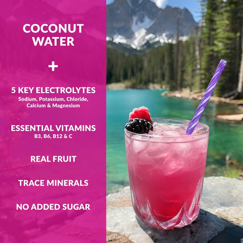 Reef Replenish Wildberry Hydration Mix contains five key electrolytes (magnesium, calcium, potassium, chloride, and sodium) to help maintain optimal hydration levels and electrolyte balance. Powered by coconut water and enriched with essential vitamins such as C, B3, B6 and B12, this mix promotes immune health and overall wellness. It also includes coral calcium, renowned for its bioavailable calcium and essential trace minerals that support bone health and metabolic function. Reef Replenish electrolytes powder has no added sugar, it’s an excellent choice for those seeking an alternative to the energy depleting, high sugar beverages. This healthy hydration mix is specially designed for individuals with active lifestyles, Reef Hydration Mixes provide a convenient and efficient way to stay hydrated every day.