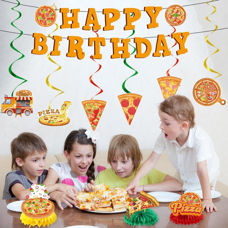 - Pizza Birthday Party: You will receive 11 pieces of pizza-themed birthday party decorations, including 2pcs birthday banners, 6pcs pizza ceiling decorations, 3pcs honeycomb center decorations, sufficient quantity and rich types.