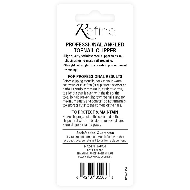 REFINE - Japan - Professional Angled Toenail Clipper, Straight Edge, Stainless Steel, 2 Count