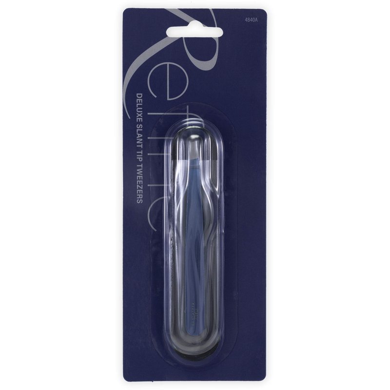 Refine Stainless Steel Deluxe Slant Tip Tweezers, Blue - Italy, Professional for Eyebrow Shaping and Hair Removal
