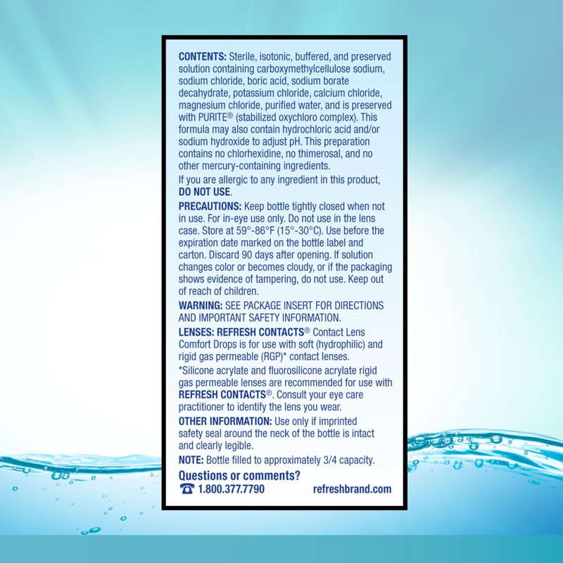 - Silicone acrylate and fluorosilicone acrylate rigid gas permeable lenses are recommended for use with REFRESH CONTACTS. Consult your eye care practitioner to identify the lens you wear.
