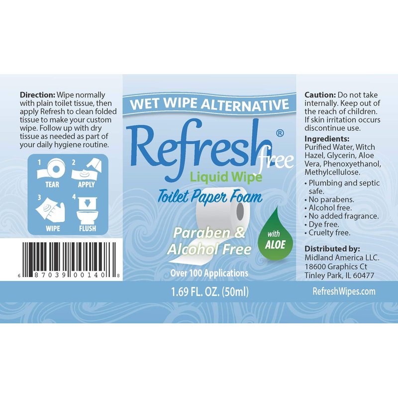 - A BETTER WAY TO WIPE: Toilet paper alone doesn't really leave you clean. Refresh Liquid Wipe Free provides a gentle moisturizing foam that converts the toilet paper you already have into a cleansing and soothing wipe, that is flushable and won’t clog your pipes. Free Formula with witch hazel and aloe cleanses and soothes and is gentle on sensitive skin types. Perfect toilet training aid for little wipers. Fresh natural fragrance, alcohol, paraben and dye free.