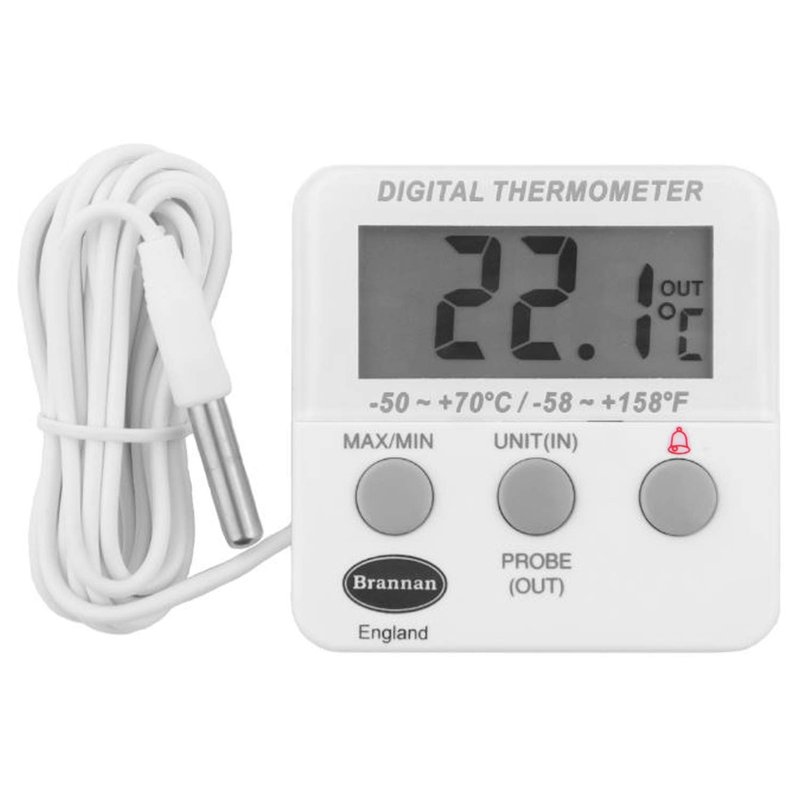 - ESSENTIAL REFRIGERATOR THERMOMETER - This digital refrigerator thermometer and has a built-in fridge and freezer alarm alert when temperatures drop. The thermometer is ideal for use in a fridge or freezer.