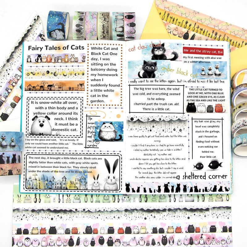 - Pet Washi Tape Set - Contains 24 rolls of different patterns of washi tape, cute black cats, dogs, ducks, chickens, rabbits, as well as chubby polar bears, bears, penguins, etc. Kids and your friends can't refuse this adorable animals washi tape stickers.