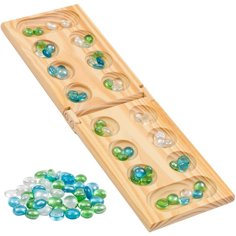 - Colorful Mancala Adventure: This mancala board game is a fantastic option for playing with family and it's an ideal entertainment activity to spice up game nights. With 48 different colored Mancala stones and a foldable wooden board, it makes the game much easier and more enjoyable.