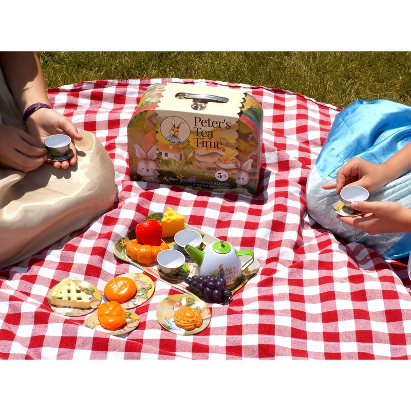 Regal Games Peter Rabbit Tea Set is ideal for kids ages 5 and up who love to have a little party in the garden or anywhere they like, giving a magical experience that combines fun, and imagination. This playset comes with a teapot that looks like it jumped right out of the Peter Rabbit book story. Cups and saucers that match the teapot. Your kids can pretend to drink tea with friends or favorite toys or dolls. A platter to pretend to serve yummy snacks. It's all about sharing and having fun! Everything is just the right size for little hands, so it's easy to play. When playtime is over, everything packs up into a cute case. You can take it to a friend's house, the park, or even on a road trip, so the tea party never has to end! This kid's tea set is the ideal gift for birthdays, Easter, or any day you want to make special.