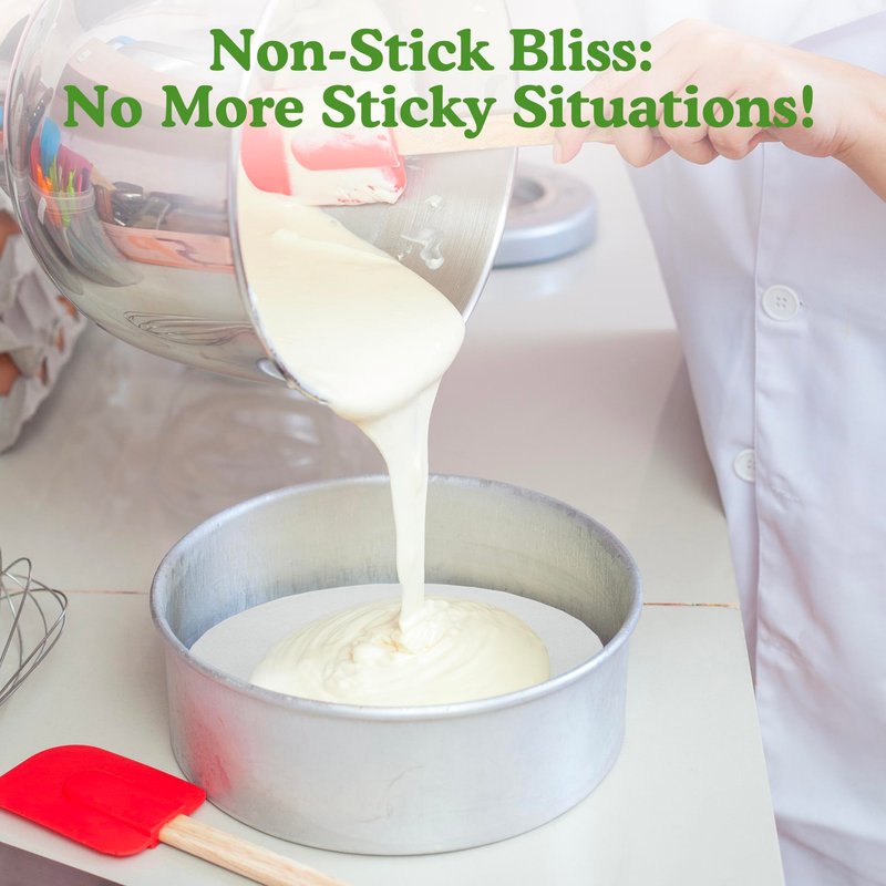 - BLEACH, CHLORINE & GLUTEN FREE, BAKING LINERS: Cake making is easy with these non-stick Non-Toxic circles, no greasing or buttering the pan is required; for temps up to 425°, keep away from the flame.