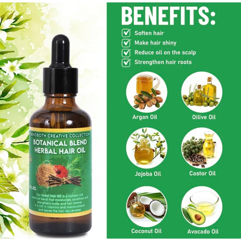 Rehoboth Creative Collection Botanical Blend Herbal Hair Oil for Dry Hair & Scalp, Promotes Strong Hair Strands, Enhances Scalp Hydration - Makes Hair Shinier & Softer