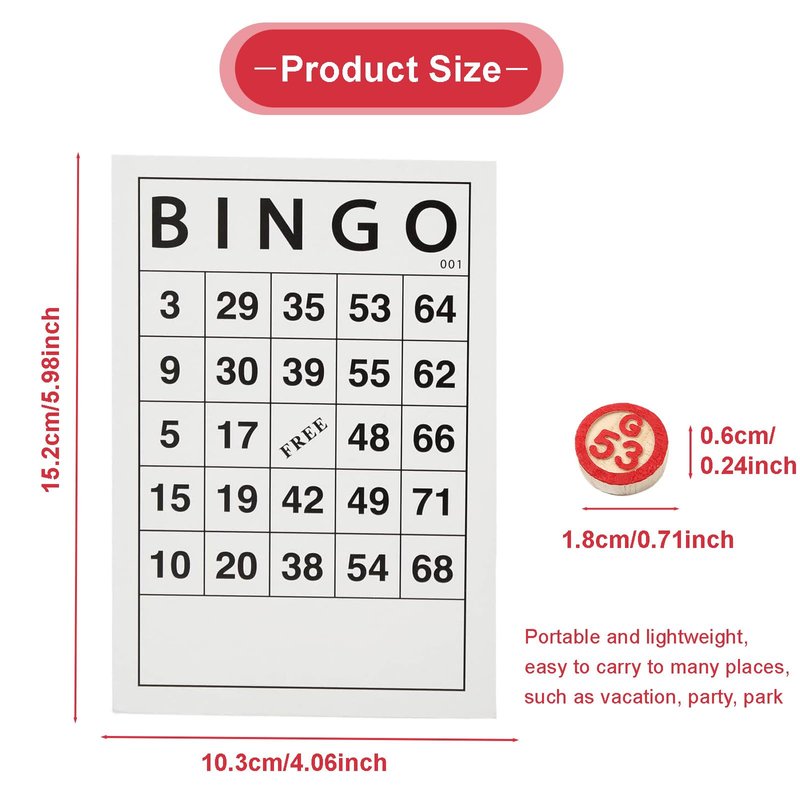 - Durability: Our chess of bingo games for family is made of wood, smooth and strong, no pointed edge or burs, will not scratch your hands. Our bingo cards disposable design is made from high quality cardstock paper to resist ripping or tearing