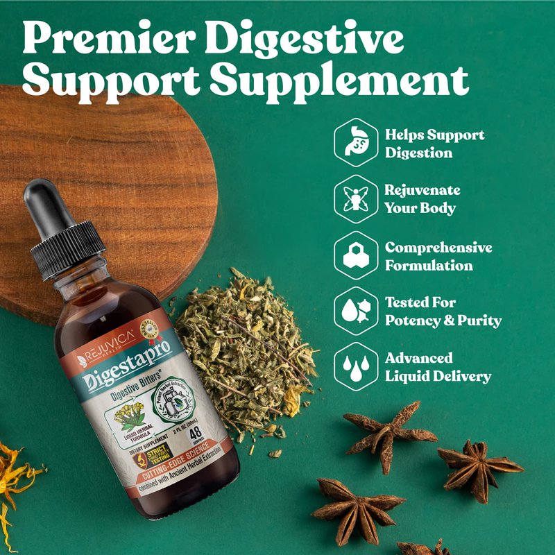 Rejuvica Health DigestaPro - Advanced Digestive Bitters Supplement - Liquid Delivery for Better Absorption - Gentian, Artichoke, Burdock, Chanca Piedra, Ginger & More!