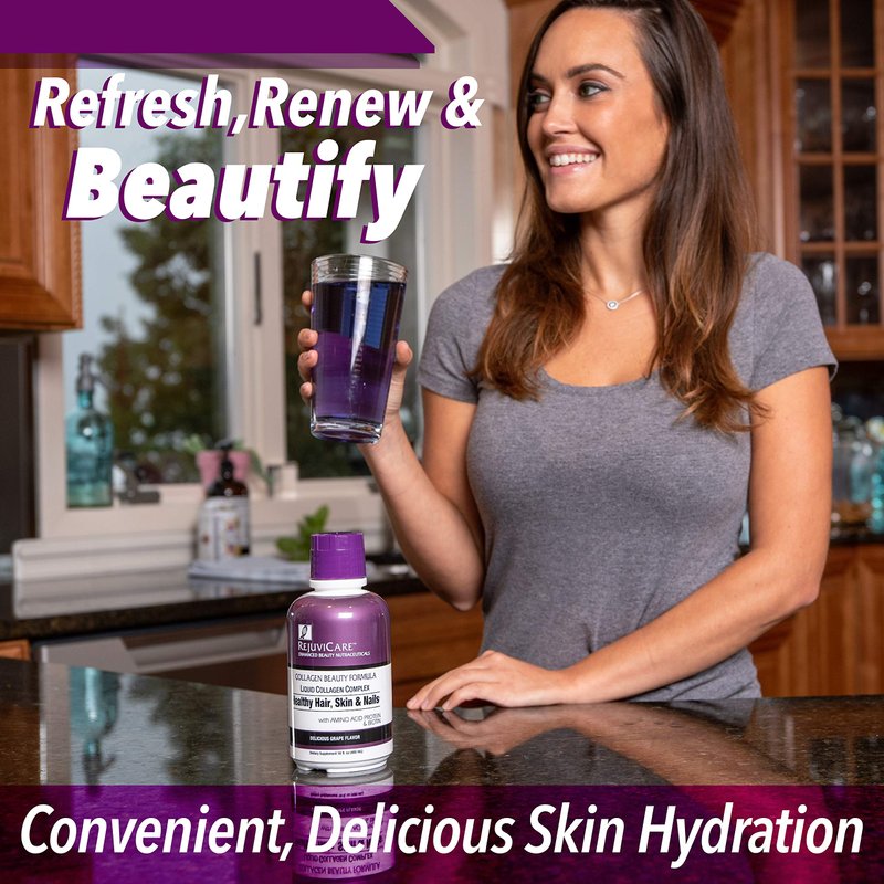 Rejuvicare Liquid Collagen Beauty Formula with Amino Acids, Protein and Biotin, Delicious Grape Flavor, Purple 16 oz ,32 servings