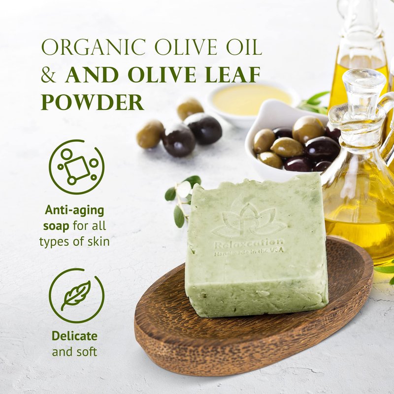 Relaxcation Olive Soap Bar with Organic Olive Oil and Olive Leaves - Anti-aging and Antioxidant Natural Cold Process Soap Handmade in USA' for ASIN (Olive Soap Bar)