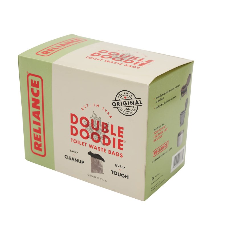 - PRACTICAL: Reliance DOUBLE DOODIE Toilet Waste Bags are the ideal waste solution. It’s two bags in one. The black interior bag contains the waste and the gray exterior zip lock bag adds a second layer of durability and reliability