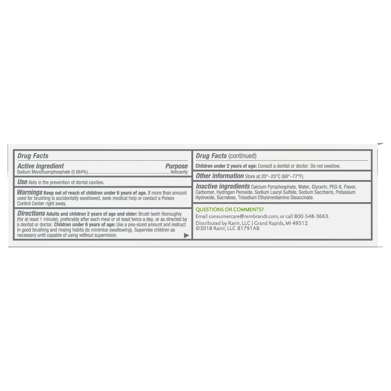 - Includes: 2-3.5 oz Tube of REMBRANDT Deeply White plus Peroxide Whitening Toothpaste