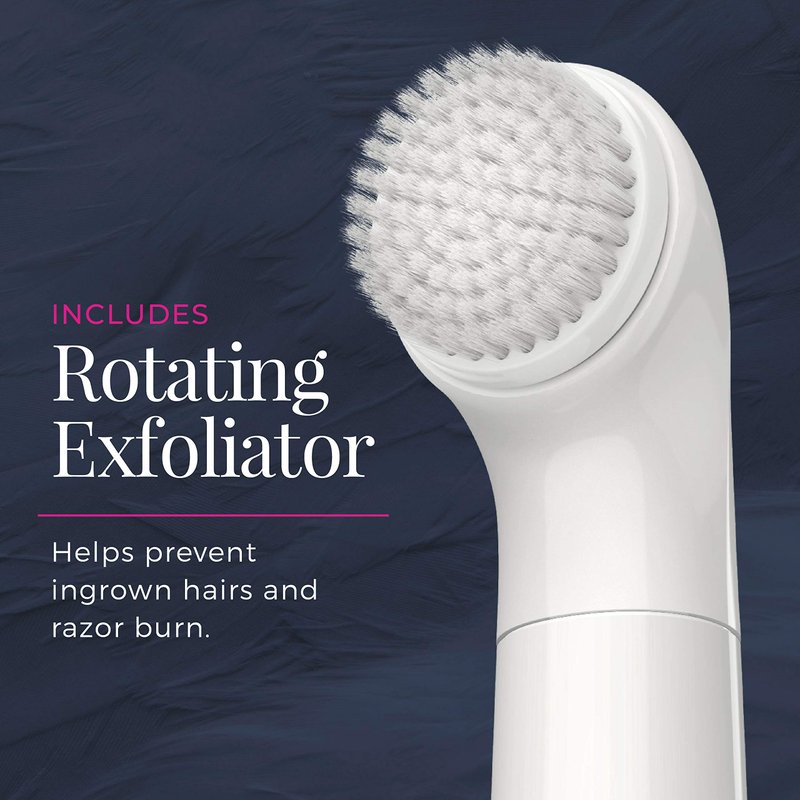 - This all in one tool gets silky smooth results with the angled foil shaver. It's perfect for use on sensitive skin. And the rotating exfoliator brush keeps skin radiant.