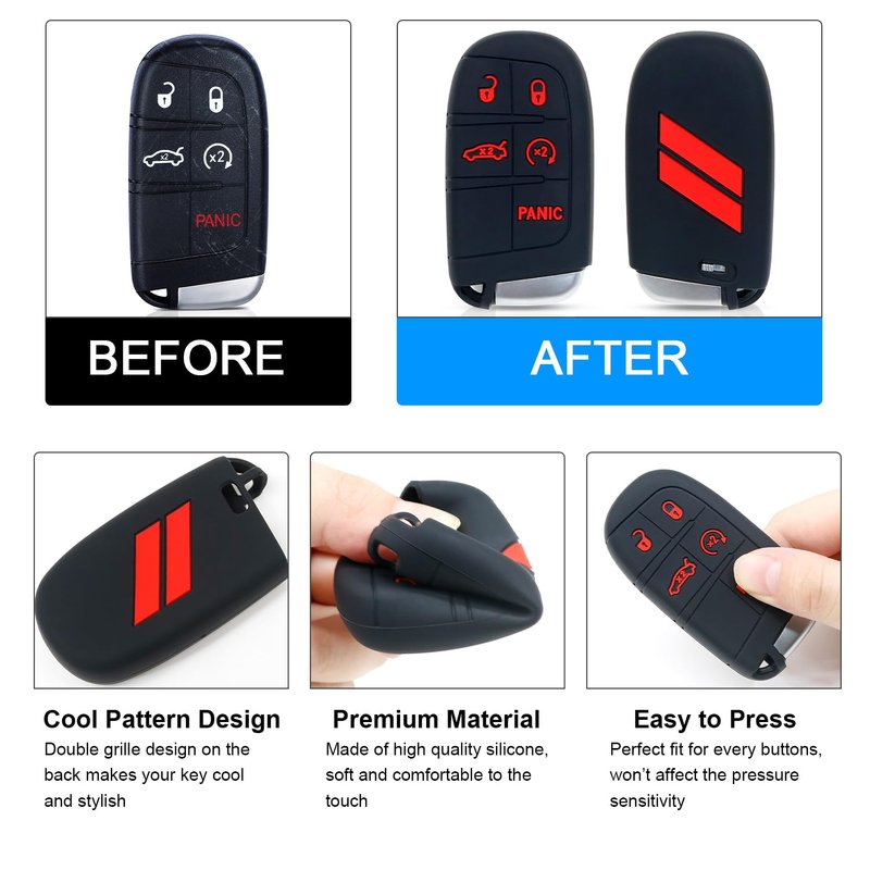 - Fit Models: Key Fob Cover for Dodge Charger accessories Challenger Durango Journey Dart 3 4 5 Buttons Protector. Package included 1 PC key fob cover.