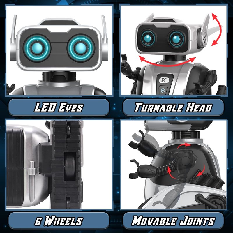 - INTERACTIVE REMOTE CONTROL ROBOT TOYS: This remote-controlled robot is equipped with 6-wheel tank tracks and a remote control. It can move and dance, making it a good choice for children's entry-level remote control toys. The 2.4GHZ remote control can prevent interference, allowing multiple robots to be used at the same time. Increases the fun of children's play.