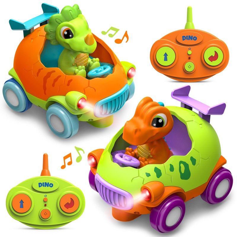 - 【My First RC Car】 This set of two remote control cars for toddlers 1-3 includes two remote controls and two dinosaur drivers. The egg-shaped cars feature music and lights, providing an engaging play experience. Designed as an ideal birthday gift for 2 3 4 year old boy.