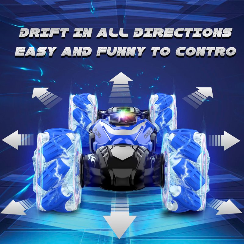 - All-Terrain Drifting: 4WD high-tech RC stunt car can drift in all directions, flexible to walk by sideways, rotate in 360 degrees. The remote car is equipped with powerful motors and crash-resistant tires, allowing it to conquer all terrains - sand, grass, dirt, rocks, and more. Suitable for indoor and outdoor adventures, providing children with thrilling and exciting experiences.