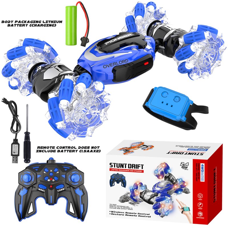 - Gesture Control/Remote Operation: The drift stunt remote control car uses 2.6GHz transmission technology, ensuring precise control over long distances. Remote control cars has two control modes, including gesture control and remote control. Put on the sensing watch, when fingers move, the car will follow. Kids can easily master the vehicle with hand gestures, or use the remote control for more precise control.