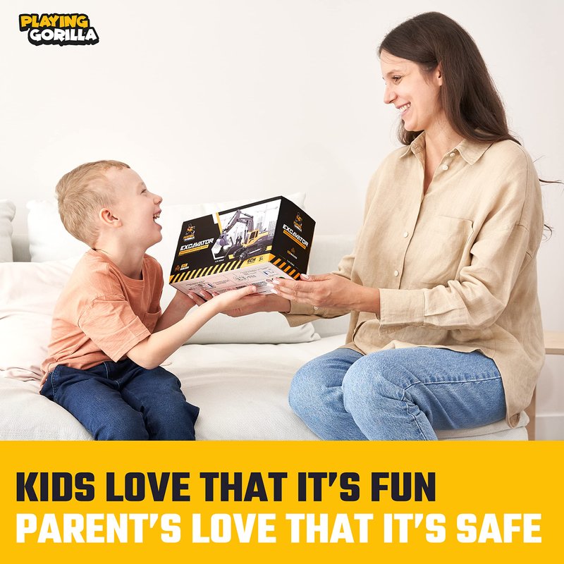 - 【Lifetime “No Tears” Warranty】Tested for safety and long-lasting reliability, this high-quality excavator toy is designed with a durable metal body, strong rubber wheels that won’t scuff wooden floors, a powerful motor, and remote control that won’t break, and our lifetime, “no tears” warranty with all parts replaced for free with a friendly Playing Gorilla smile