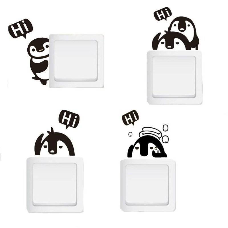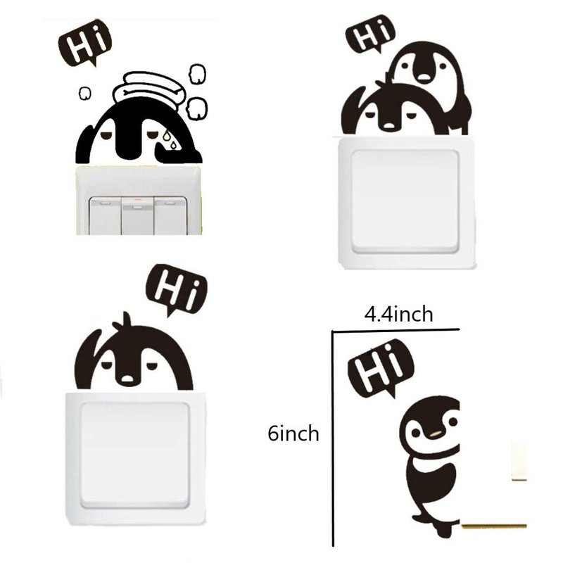 Removable Switch Stickers, 4 Cute Penguins Cartoon Wall Sticker, Light Switch Decor Decals, Family DIY Decor Art Stickers Home Decor Wall for Kids Bedroom Office Home Decoration