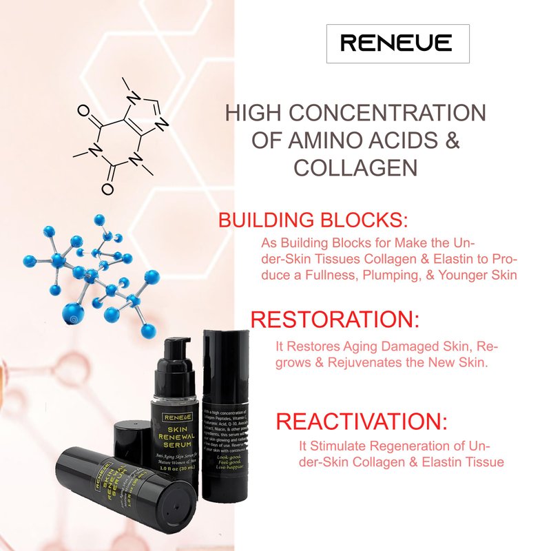 RENEUE Anti-Aging Serum with Amino Acids, Collagen, Vitamin C, and Hyaluronic Acid That Diminishes Wrinkles and Erases Dark Spots & Super-Hydrates Skin.