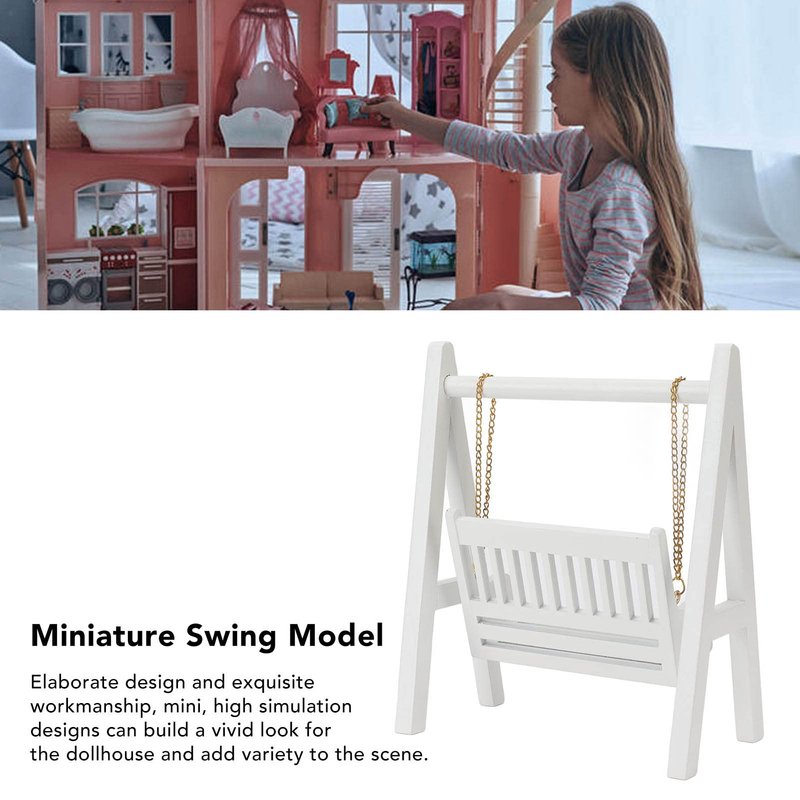 Rengu Miniature Swing White Dollhouse Miniature Porch Swing Exquisite Thickness