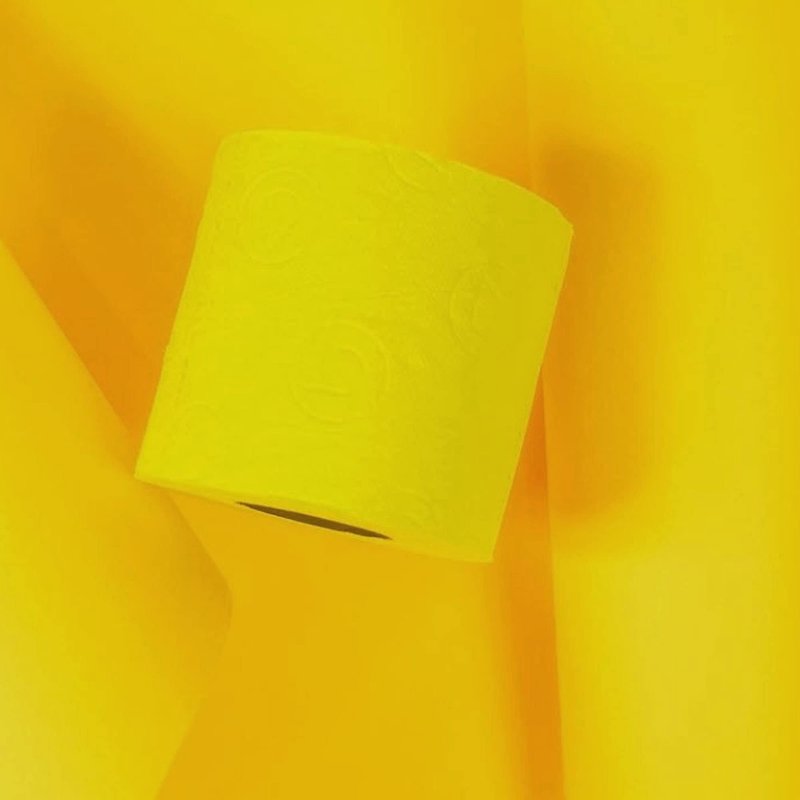 - YELLOW TOILET PAPER: 2 rolls in a pack. This yellow toilet paper is the ultimate accessory for your contemporary bathroom.The Renova yellow toilet paper really is the ultimate in luxury tissue.This unique yellow toilet paper is the perfect addition to really brighten up the toilet and make the visit to your bathroom a pleasure!