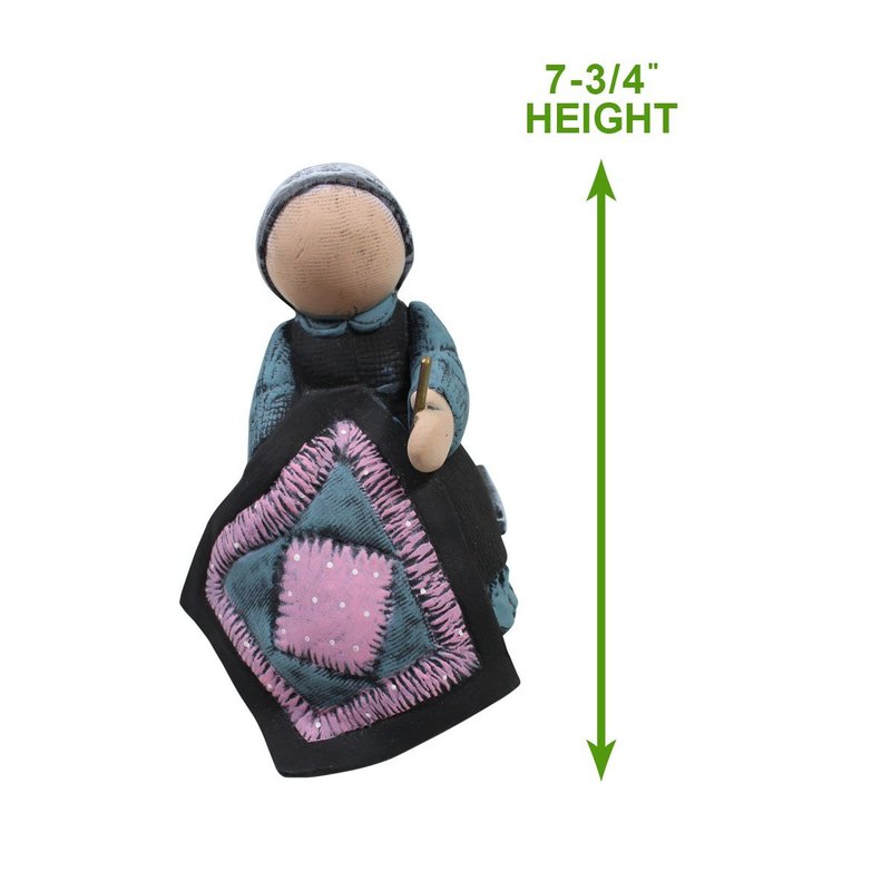 - Ceramic Figurine Amish Girl Quilter on Bench 7 3/4 in. H crafted in Maine