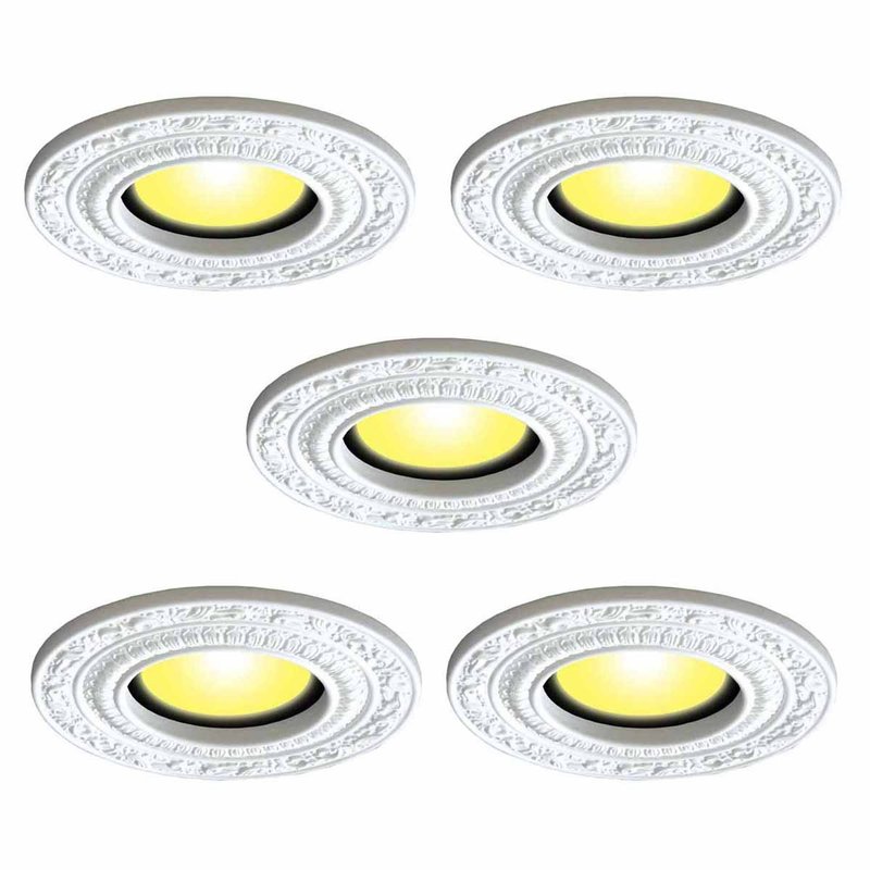 Renovators Supply Manufacturing Recessed Lighting Trim 10 in. Round White Polyurethane Ornate Recessed Ceiling Light Trims Pack of 5