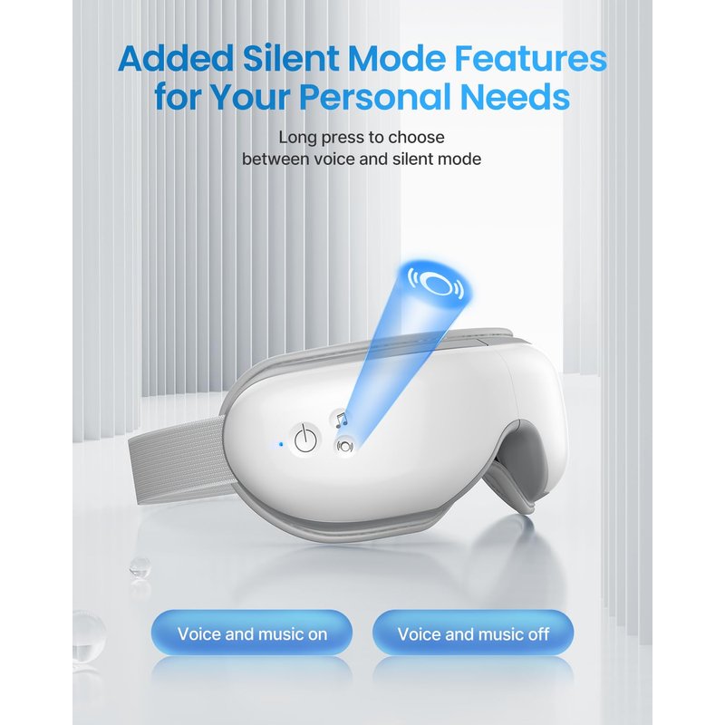 - Bluetooth Customizable Music: Built-in speakers and pre-recorded sound enhance stress relief. Connect via Bluetooth to play your own music playlists. Simply search for 'Eye Massager' device with Bluetooth on.