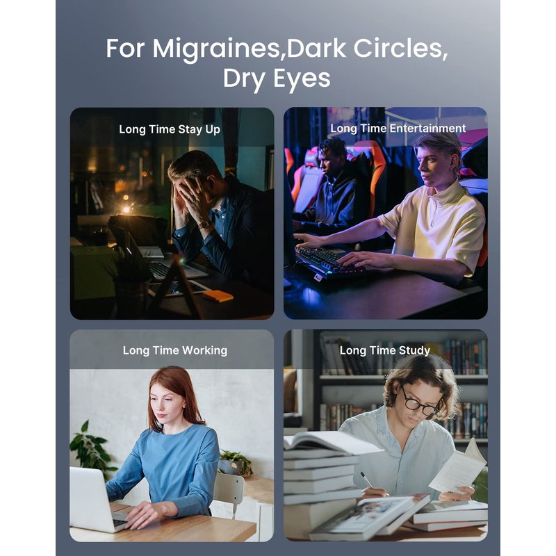 - 2 levels of compression & heat settings: Choose between 2 adjustable compression intensity settings to enhance your state of calm. Activate a soothing heat of 104℉ (40℃) or get a deeper heat of 107℉ (42℃) . Daily use with 15mins is the best time to relax the eyes, and will not cause the machine to overheat protection.
