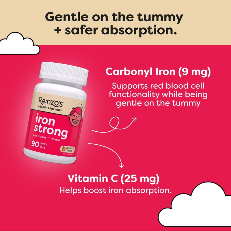 - Delicious tummy-friendly iron for kids: Kids love the taste of these melty tablets made with carbonyl iron to help minimize stomach upset and Vitamin C to support iron absorption