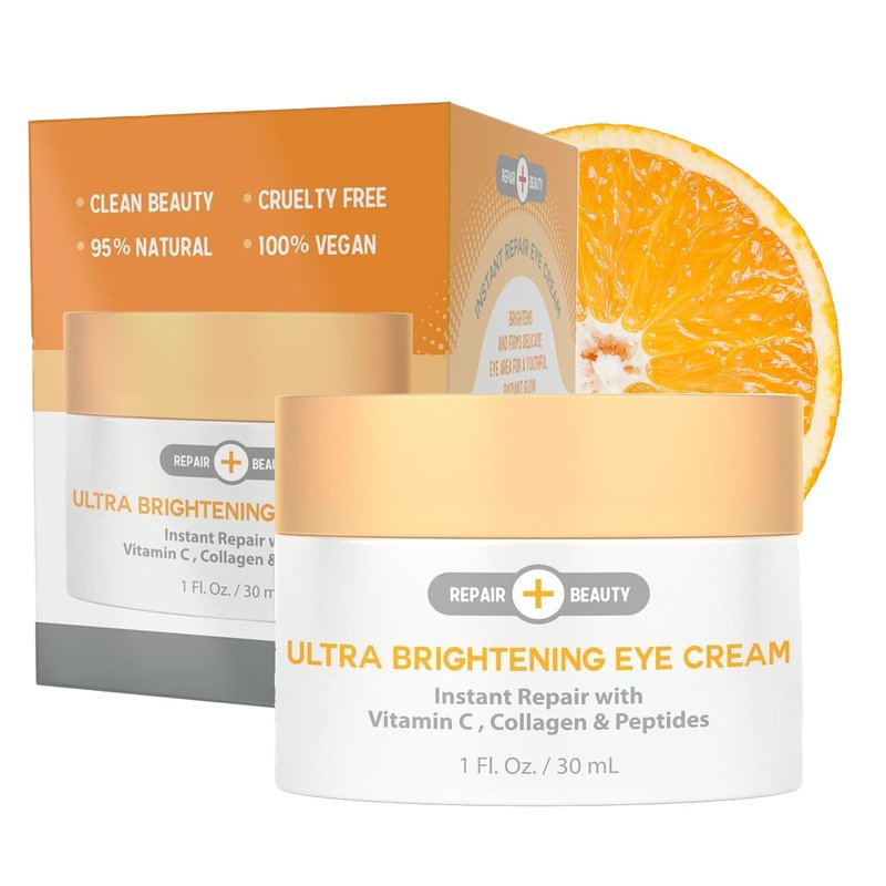 Repair Beauty Vitamin C, Collagen and Peptides Eye Cream - Reduces Dark Circles, Puffiness & Eye Bags, Brightening Under Eye Cream - Cruelty Free Korean Skin Care For All Skin Types - 1.0 Fl. oz/ 30ml